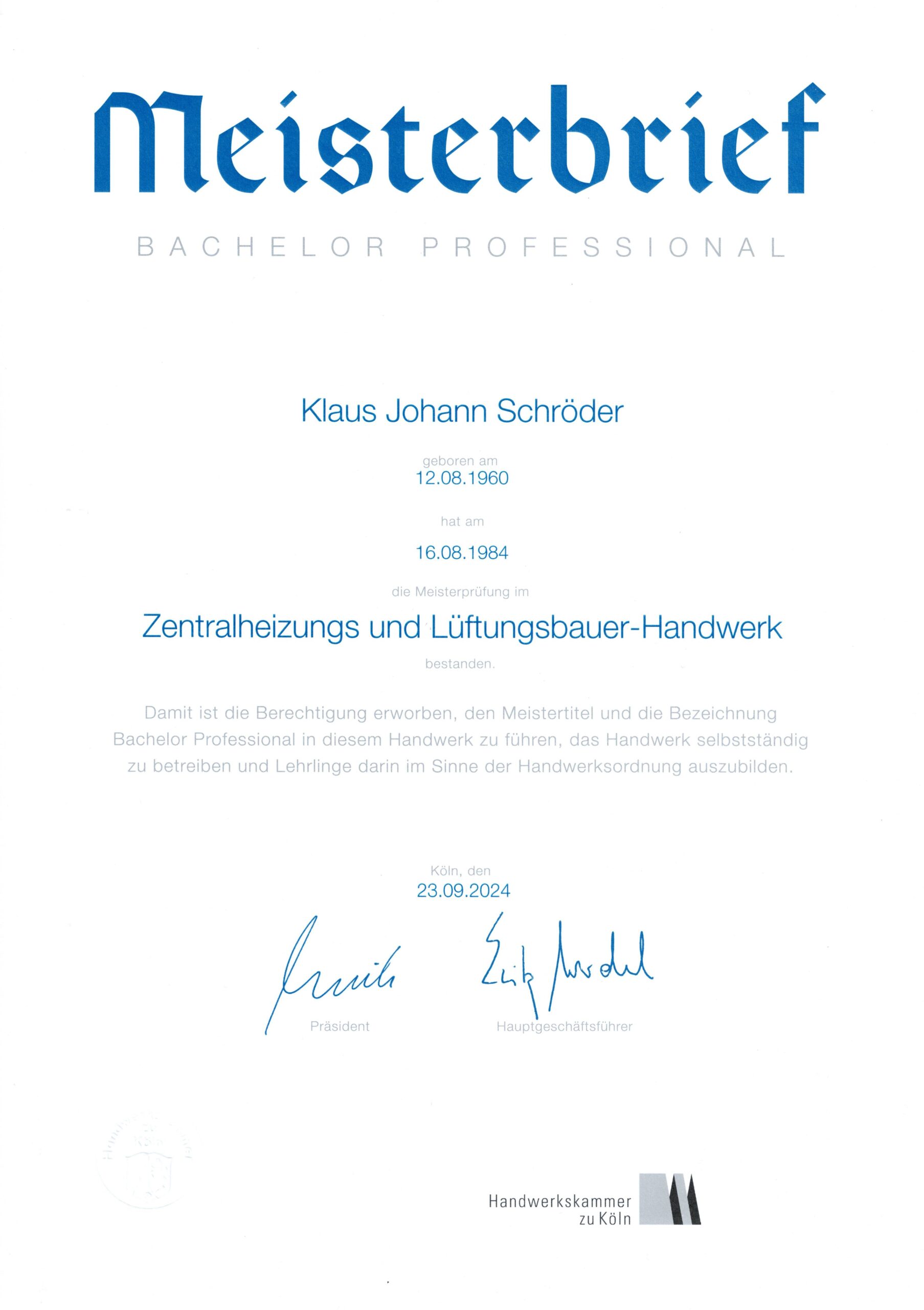 Mein Antrieb ist mein Wissen: Nach meiner Ausbildung absolvierte ich die beiden Meisterprüfungen Heizungsbau und Sanitärinstallation, sowie den Betriebswirt des Handwerks. In über 25 Jahren Unternehmerverantwortung beschäftigte ich rund 75 Mitarbeiter*innen und habe über 30 junge Menschen ausgebildet.